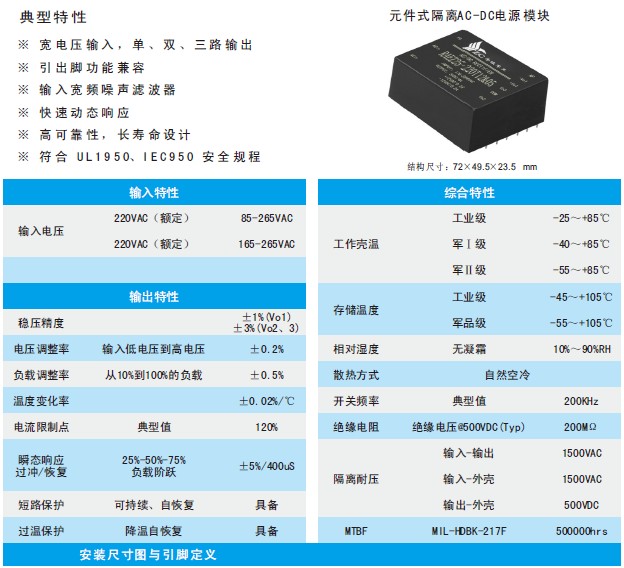 | 产品型号 | 标准输入 | 输入电压 | 输出电压 | 输出电流 | 纹波和噪声 | 效率 |
